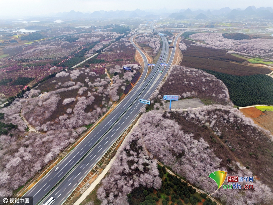 2016年03月18日,贵阳一段高速公路受到人们赞美,被称为最美高速公路。这段高速公路是沪昆高速贵州省清镇至安顺段,两侧花海环抱,纵横几公里。图片作者:吴东俊/视觉中国