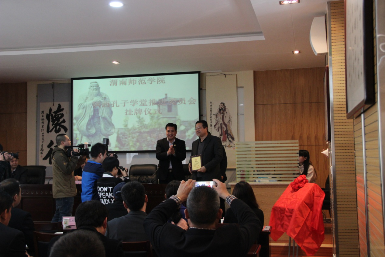 3月19日,陕西渭南师范学院孔子学堂举行了“陕西孔子学堂推进委员会挂牌仪式”、 “青年之声·净语良言我承诺”网络大行动倡议活动暨陕西孔子学堂推进委员会2016年第一季度工作会议。渭南师院供图