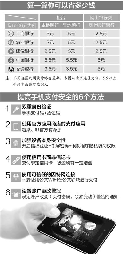 以工行为例,按照此前异地跨行转账手续费的规定,转1000元需要交手续费2元,转1万元需交10元,如果是5万元及以上,手续费最高可达50元。而根据最新政策,通过工行手机银行转账,这些费用可以免除。