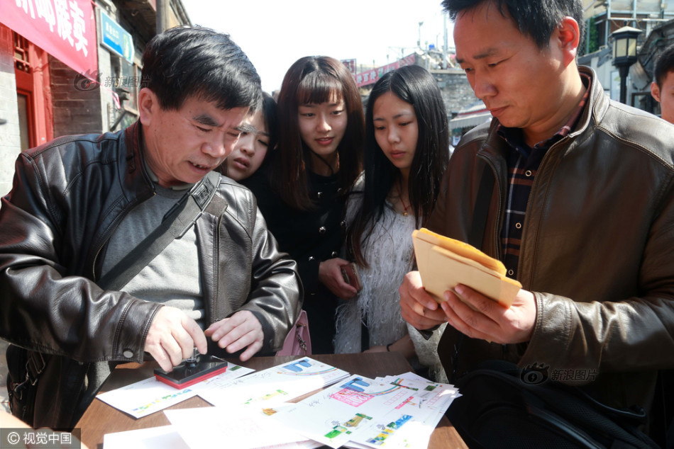 2016年03月20日,北京,因装修停业一个多月的大清邮政信柜在什刹海烟袋斜街重张开业。重张后的信柜除保留原有邮政业务外,还新增邮驿博物馆,为游客呈现从商周时期到清代的邮驿发展历程。集邮爱好者在大清邮政信柜门前加盖纪念邮戳。来源:视觉中国