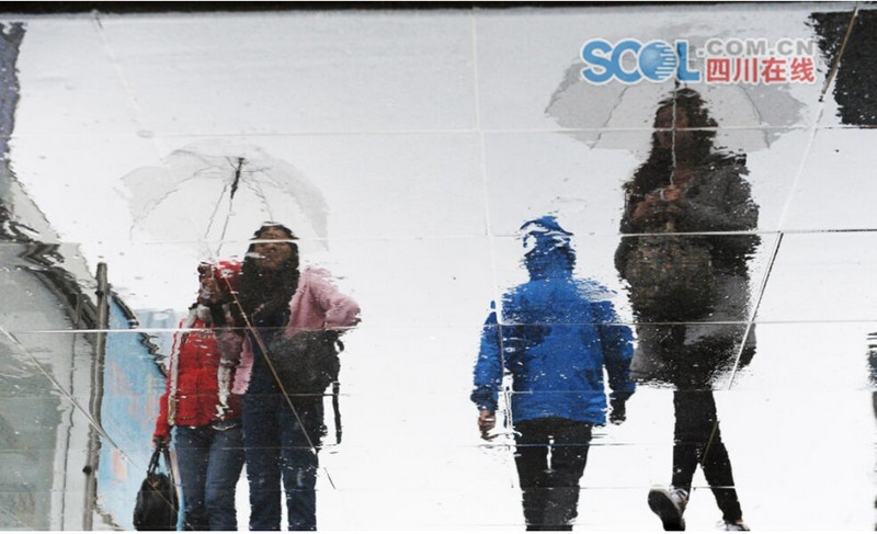 成都春熙路行人踩出“水墨画”
