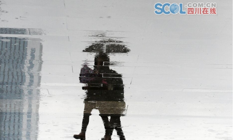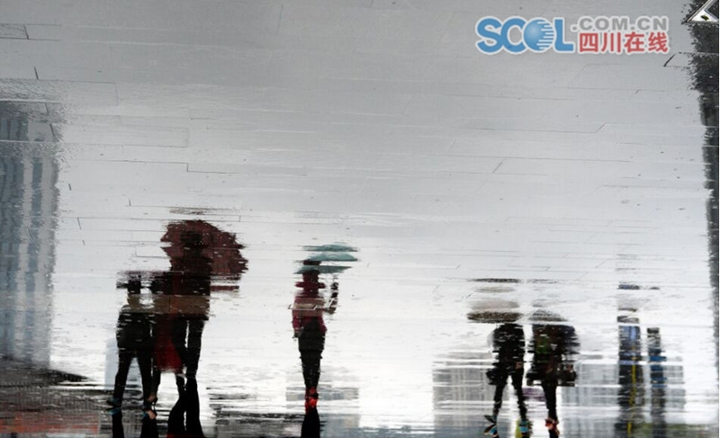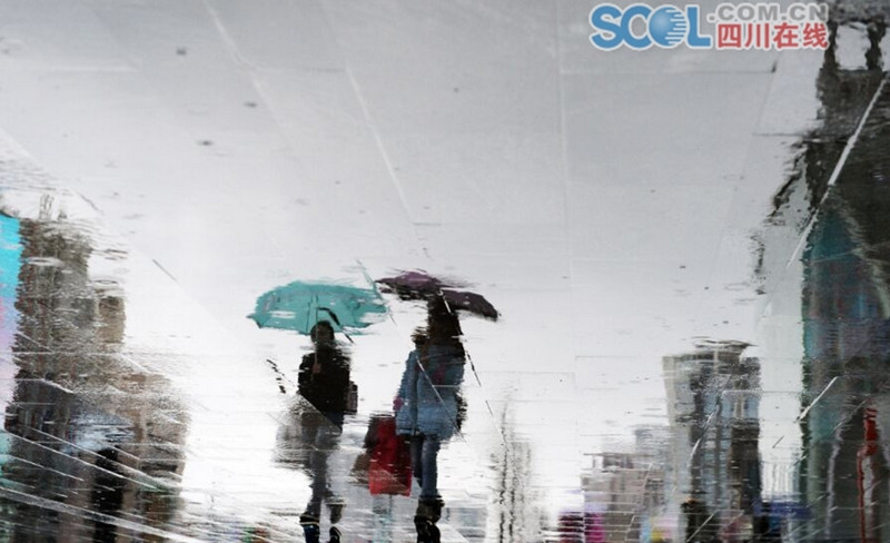 雨中的春熙路远处景物明亮而影像朦胧,行人的倒影色调浓淡有致,行人一边行走着,地面上的世界也一直变幻着,模糊又清晰,别有一番风味。摄影记者用镜头捕捉到人们出行常常被忽略的日常之美。每一张照片,每一个身影,每一处景致,美得像一张张散发着墨香气却又朦胧的水墨画。
