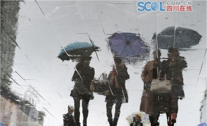 3月22日,成都淅淅沥沥的雨水下个不停,摄影记者在成都市春熙路附近看到,出行的人穿上厚衣,打着雨伞穿行在雨中。春熙路的地面因为被雨水打湿得像一张“宣纸”,行走在这条街道上的行人犹如画家,行人踩出一张张具有韵味的“水墨画”。