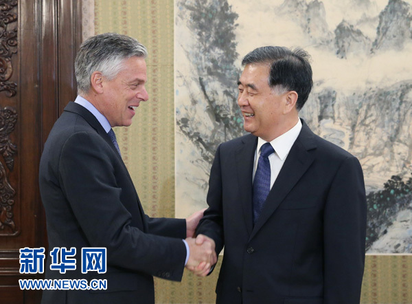 3月24日,中国国务院副总理汪洋在北京中南海紫光阁会见由美国前驻华大使洪博培带队的美国战略与国际问题研究中心代表团。新华社记者姚大伟摄
