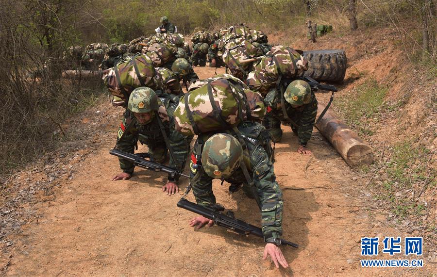 3月23日,武警安徽总队第二支队特战队员在巢湖某山地组织极限体能训练。