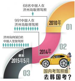 而截至2015年5月,济州岛已向1093名外国人发放了驾照,其中中国人占了90%。另据公安部统计数据显示,2013年,中国共办理持境外驾驶证换领中国驾驶证82140本,持韩国驾驶证换领中国驾驶证占境外驾驶证换证总数的8.7%。