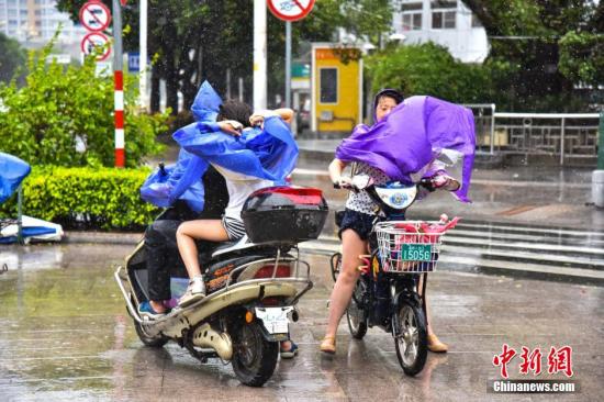 资料图:2015年8月8日,第13号台风“苏迪罗”逼近福建,台风带来的狂风暴雨对市民出行造成巨大影响,市民戏称第一次觉得自己体重不够。 李南轩 摄