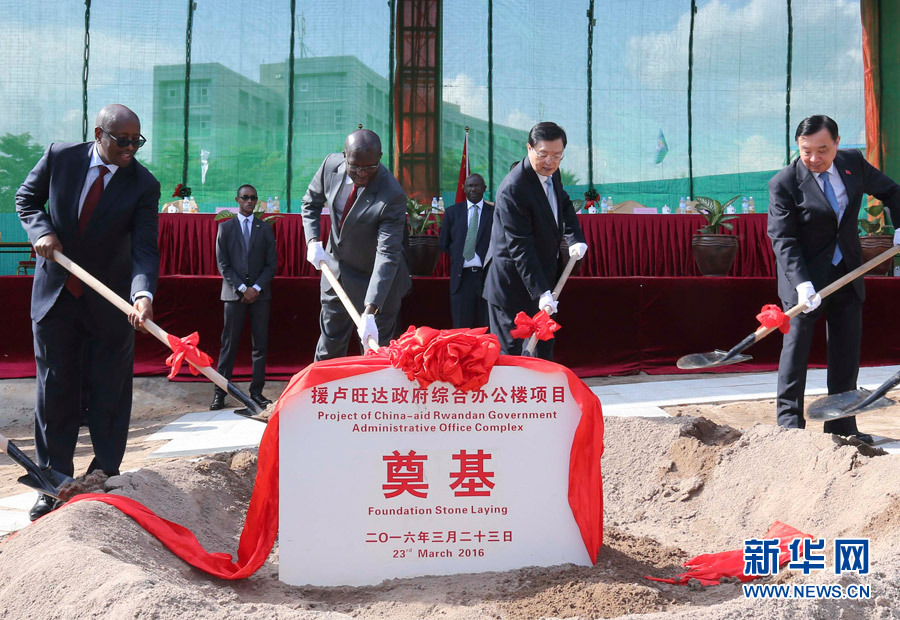 3月22日至23日,全国人大常委会委员长张德江对卢旺达进行正式友好访问。这是3月23日,张德江与卢旺达总理穆雷凯齐在卢旺达首都基加利共同出席援卢政府综合办公楼项目奠基仪式。新华社记者 丁林 摄