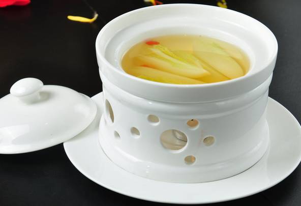 其实,开水白菜美味的秘诀在于“开水”。这看似白开水的清汤,是用老母鸡、老母鸭、火腿、排骨、干贝等放入汤锅内,加入足量清水、姜、葱,烧开后打去浮沫,加料酒,改用小火保持微开不沸,慢慢地熬至汤出鲜味。熬制这样的清汤,至少需要4个小时。开水白菜清鲜淡雅,汤味浓醇,有不似珍肴、胜似珍肴之感。