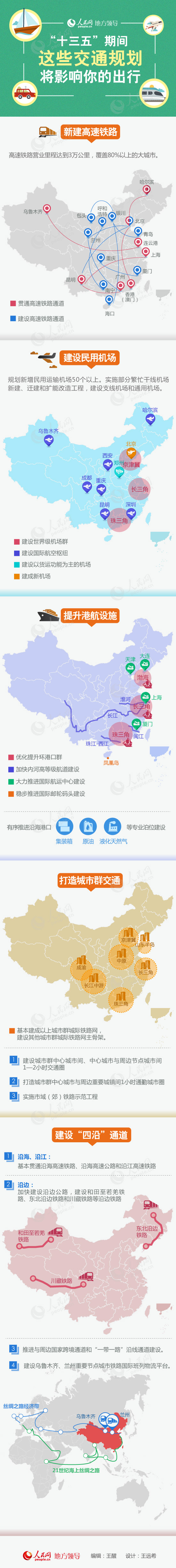 编者按:“十三五”规划纲要提出,“十三五”期间要“拓展基础设施建设空间,加快完善安全高效、职能绿色、互联交通的现代基础设施网络”。为实现以上目标,未来5年,将要建设哪些交通重点工程?这些工程是否涉及你的家乡?它们是否会影响你的出行?人民网地方领导频道为您梳理。