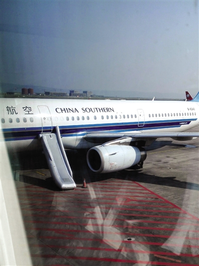 昨日下午,南航CZ3456航班登机完毕后,一名乘客将厕所旁的舱门打开放出应急滑梯。