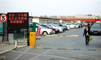 2014年11月,北辰亚运村汽车交易市场内的二手车市场正在营业。资料图片/新京报记者 彭子洋 摄
