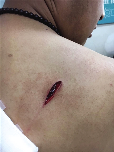 参与违章建筑拆除工作的张先生脸部和背部被砍七刀,是最严重的伤者。昨日下午,张先生告诉新京报记者,3月25日下午1时30分许,自己和10余名工友前往台湖镇董村正街南口一处平房拆除违建房屋。张先生称,违建的房屋是一家超市,其东西面均有私自违章修建的房屋,当日进行拆除的是东面最后一处,面积约10平米。