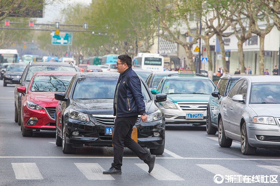 杭州:斑马线前车辆礼让行人蔚然成风