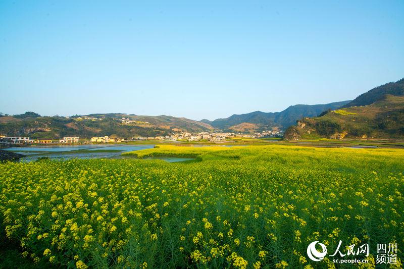 三月,四川省泸州市叙永县落卜镇云山坝,一块块油菜花地散发出浓浓的春意。(李欣 摄)