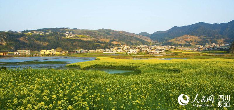 三月,春耕时节,四川省泸州市叙永县落卜镇云山坝,一块块油菜花地和农田散发出浓浓的春意。云山坝因其村落分布在四周群山环抱的漏斗形坝底而得名,坝底幅员面积达2.3平方公里,在当地素有“坝中之王”和“世外桃源”的美誉。(李欣)