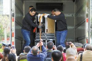“终于回来了,非常高兴也非常激动!”昨天上午,河北博物院院长罗向军的喜悦溢于言表。她透露,从得知灵寿幽居寺北齐佛首在台湾现身,星云大师有意捐献,到佛首回到大陆回到河北前后历时一年多,“先是佛身从河北博物院起运去台湾,与在佛光山的佛首一起展览,仪式很宏大,盛况空前。我也去台湾看了展出,当时很激动,就盼着佛首与佛身早日回到咱们河北。本来原计划去年8月回来,后来因为台湾民众的参观意愿很强烈等原因,最终定于今年3月回河北博物院,这几天我也一直盼着,今天终于回来了。”