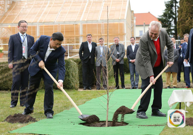 28日抵达布拉格当晚,习主席来到泽曼总统的乡间官邸。两国元首举行“不打领带”的会晤。雨后初霁,古朴典雅的拉尼庄园绿草如茵,两位元首种下一株来自中国的银杏树苗,共同为树苗培土、浇水。习主席说,前人栽树,后人乘凉。银杏树象征友谊长存,寓意中捷友好绵长久远。
