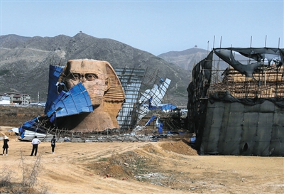 石家庄拆除山寨狮身人面像