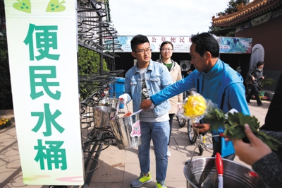 昨日,福田公墓提供“便民水桶”供前来扫墓的市民免费使用。