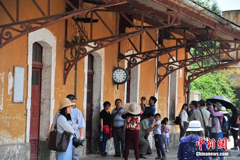 4月3日,游览碧色寨的人络绎不绝。清明小长假期间,云南蒙自市碧色寨火车站独特的法式建筑风格,吸引众多游客到此游览。滇越铁路于1910年建成,碧色寨火车站成为这条铁路的核心枢纽,是中国最古老的火车站之一。 记者 刘冉阳 摄
