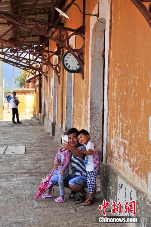 4月3日,游客在碧色寨火车站。清明小长假期间,云南蒙自市碧色寨火车站独特的法式建筑风格,吸引众多游客到此游览。滇越铁路于1910年建成,碧色寨火车站成为这条铁路的核心枢纽,是中国最古老的火车站之一。 记者 刘冉阳 摄