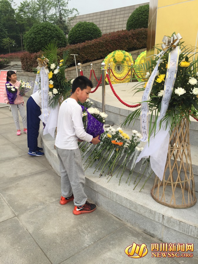 一早,来自四川大学春蕾青年志愿者服务队的10名学生就赶到烈士陵园,同学们在纪念碑前深深鞠躬,为烈士们敬献鲜花,并帮忙清扫。“我们寒假时就约好了,要在清明当天一起来为烈士扫墓。”今年大一的肖双说,“他们是最可爱的人,值得我们永远铭记。”