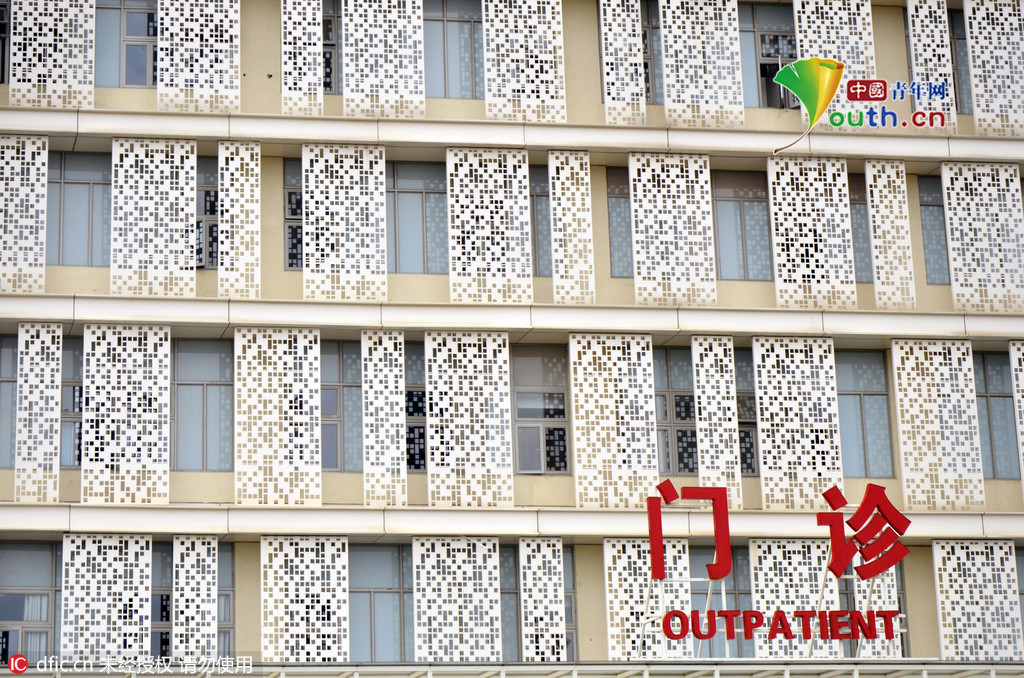 2016年4月5日,云南昆明,呈贡区春融路上,昆明医科大学第一附属医院呈贡医院的大楼外墙造型似“二维码”,大量镂空状方格遍布其上,网友调侃密集恐惧症慎入。