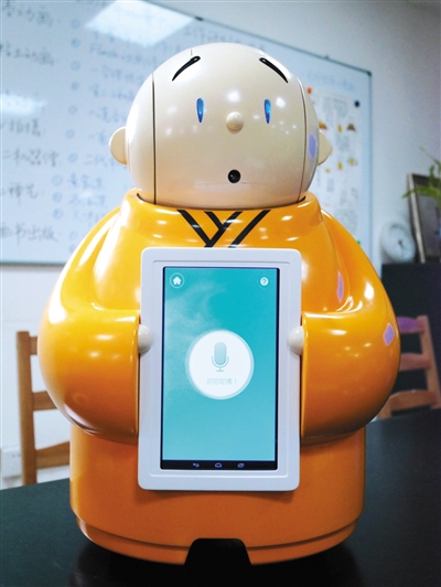 最近,一个呆萌的机器人在网上火了。和普通机器人一样,它身高近60厘米,能跟人语音对话,能明白简单的指令;但不同的是,它身穿黄色僧袍,会说佛经佛法,还动不动就说“我去问问我师父”。它就是一个叫贤二的机器僧。昨日,新京报记者前往龙泉寺——贤二机器僧的家进行了探访。
