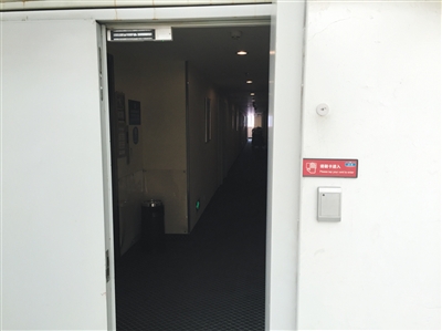 在赵公口附近的汉庭酒店,电梯需要刷卡运行,但从楼梯间却可以轻松上到客房。每个楼层,走廊门都敞开着。