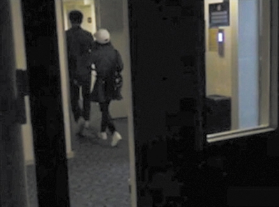 6日晚间,在7天连锁酒店(景泰桥店),色情小卡片“小妹”走出电梯。