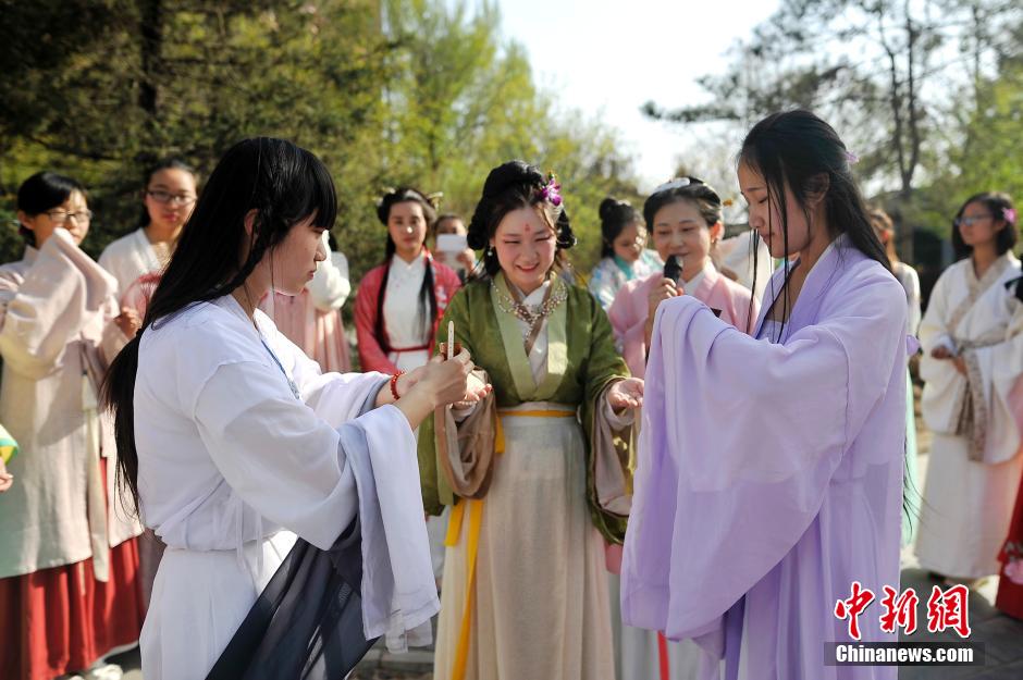 4月9日,农历三月初三上巳节,山西汉文化社近百名成员们齐聚太原市碑林公园,身着中华民族传统服饰,祓禊,流觞,以复古的方式度过传统佳节。上巳节是中华民族最古老的节日之一,早在《周礼·春官·女巫》中就有记载,这一天人们往往在水边以兰草祓禊,洗濯去垢,消除不祥。韦亮 摄