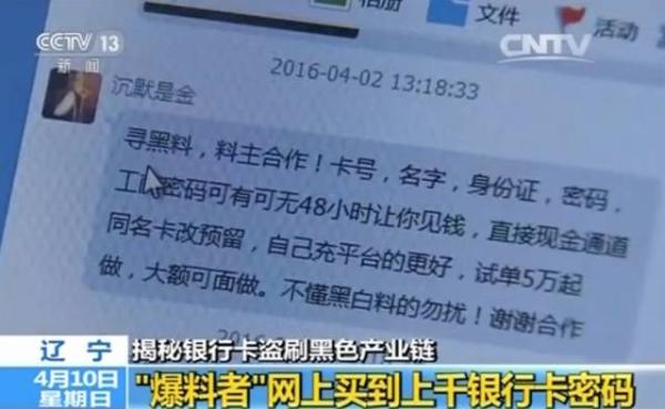 原标题:央视调查:5分钟网上买到上千条银行卡信息,几乎全部正确