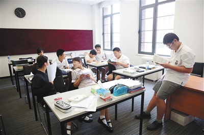 天津黑利伯瑞国际学校初中班学生在教室复习,准备下午的期末考试。 新京报记者 王远征 摄