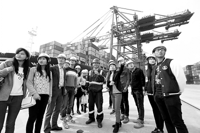 师生在赤湾港了解港口运行情况。