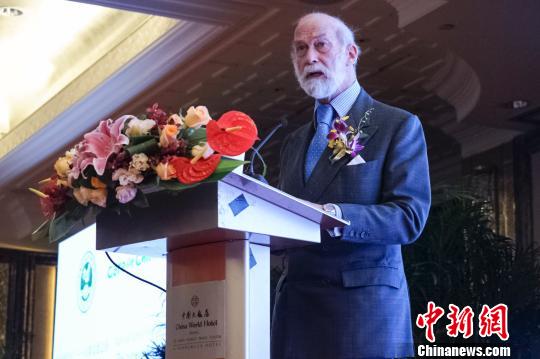 图为迈克尔亲王(英国女王堂弟)在开幕式上讲话。中新社熊然摄 熊然 摄