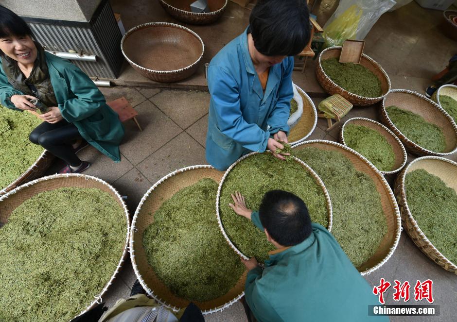 4月12日,浙江新昌中国茶市大佛龙井春季交易会现场。当日,2016中国茶叶大会第10届新昌大佛龙井茶文化节在新昌县拉开序幕,茶文化节期间将举行龙井茶王赛、茶叶品牌发布、斗茶会等活动。浙江省新昌县是中国茶叶之乡,有着1500多年的产茶历史。 中新社发 袁云 摄