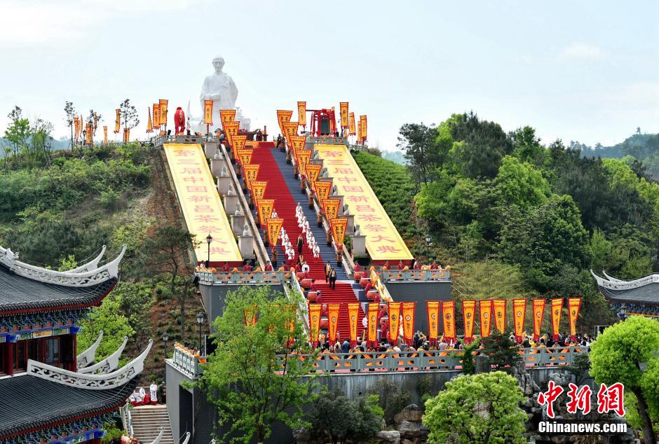 4月12日,身着传统服饰的司仪人员在进行茶祭。 当日,2016浙江新昌茶祭大典在中国茶市茶文化主题公园举行。茶祭大典包括鸣炮、献贡品、敬香、击鼓撞钟、奏乐、献茶敬茶、恭读祭文等传统仪式。中国古代有不少高僧、隐士等曾在新昌天姥山品茶潜修。千百年来,天姥山地区形成了谷雨前举行茶祭的习俗。