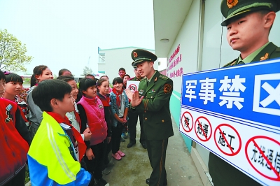 国家安全教育进校园。昨天(14日),在浙江省温州市龙港镇第三中学,边防官兵手持标志牌,向学生们讲解相关国家安全知识。新华社发