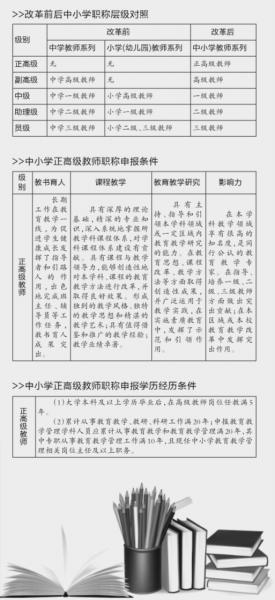 本市人社部门介绍,这次改革健全了职称层级,改变了原来中学教师最高等级为副高级、小学教师最高等级为中级的规定,将中小学教师职称等级最高设置到正高级,打通了教师职业发展通道。