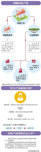 北京市朝阳区律协房地产委员会委员张志同律师也表示,很多人在购房时存在认识误区,只注意到房产证上写明房屋产权70年,而忽略了土地使用权的期限。“虽然期限都被设定在70年,但是房屋为所有权,是永久的,只要还没有毁坏,就归产权人所有;而土地只是使用权,期限到了之后,就必须要续期。”