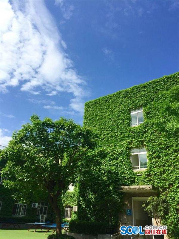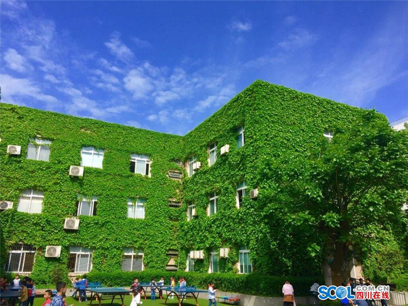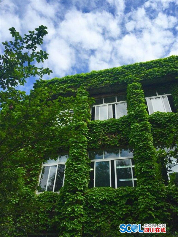 4月14日上午,在阳光的照耀下,成都市玉林小学爬满爬山虎的教学楼,绿意盎然,生机勃勃。1989年建校伊始,该校就种下了爬山虎,如今,一到春夏,整栋教学楼便被绿绿的爬山虎覆盖,成为校园独特的景观。(记者 阳帆)
