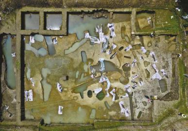 空中鸟瞰高山古城遗址发掘现场全貌。