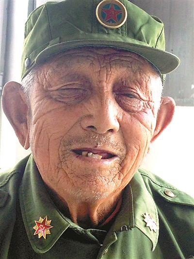 90岁的李春友在村民簇拥下走到村卫生室门口,看见北京青年报记者伸手来握,他先停步并拢双腿立正,军装“哗”地一抖,右手敬了一个标准的军礼。这位老兵是目前国内在任的年龄最大“村官”。