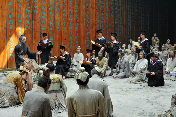 曲阜孔子六艺城书厅之内,孔子传道受业的情形再现