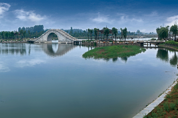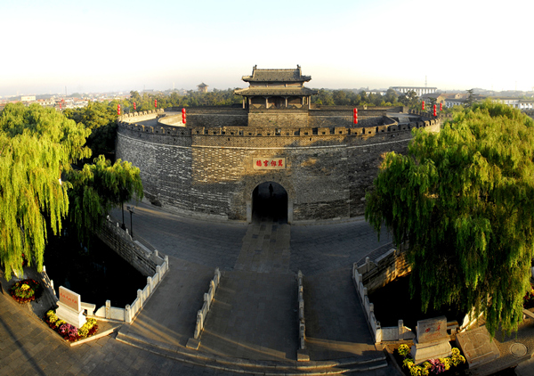 曲阜明故城万仞宫墙下,柳绿婆娑、泮水环绕