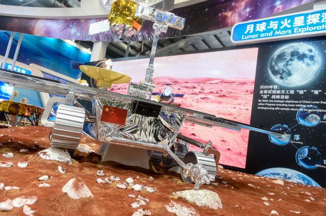 ↑图为2014年珠海航展上展出的火星探测环绕器。 新华社记者 喻菲 摄