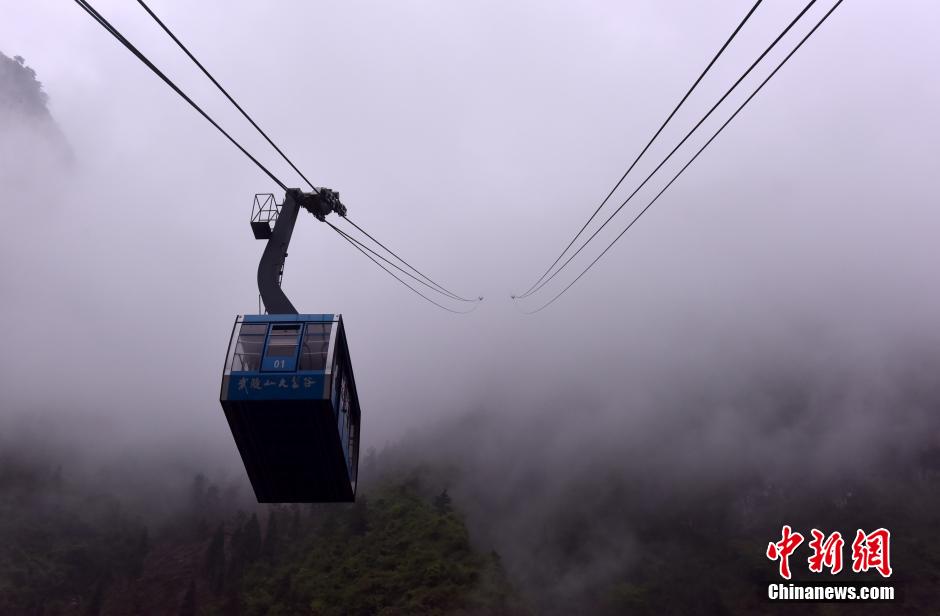 4月23日,重庆市涪陵区武陵山大裂谷景区5A提档升级项目,拥有堪称“亚洲第一陡”峭度的“武陵泰斗”索道迎来首批客人。记者了解到,世界上最高的往复式索道爬坡标准角度为45度,目前该索道坡度已达42.6度,垂直落差约300米,斜长为634米。索道运行时遇上山顶云雾缭绕,犹如置身“仙境”。此外,景区另一风景“天门洞”索桥项目也修建完毕,一横一纵两道天索架于万壑群山中,形成了武陵山大裂谷“天门奇险”的新游线。 黄河 摄