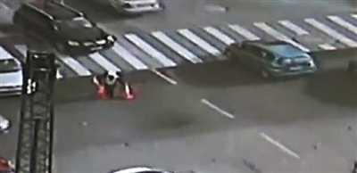 网传现场监控视频显示,事发地点位于一十字路口处,4月21日下午4时20分左右,现场车来车往,车流量较大,一身穿警务制服的工作人员正在马路中央一边对讲机汇报情况,一边指挥过往车辆,并用隔离帽隔离相关区域,后方有轿车遭隔离帽阻拦而绕道前行。
