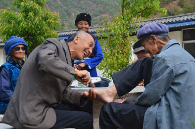 图为2015年4月25日,李桂科在山石屏给康复者老人们剪指甲。苏鹰 摄
